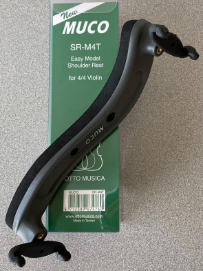 Muco SR-M4T Violin Shoulder Rest, 4/4 size - The ergonomic body is made with STRONG nylon fiber composite in a matte grey finish and features an extra thick firm pad, easy grip feet and patented resonant holes.