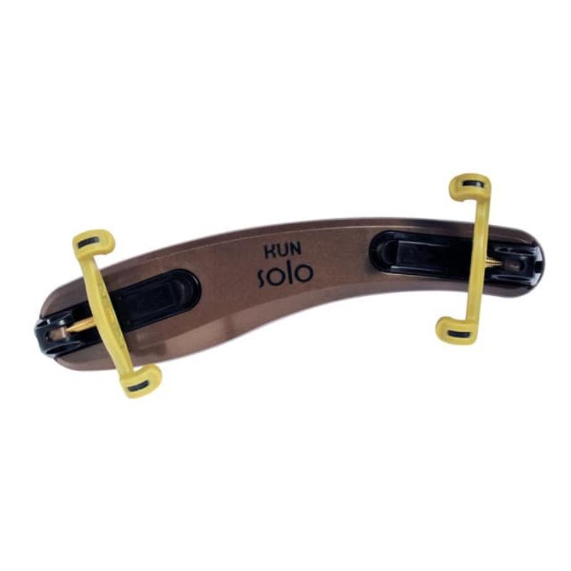Two years of R&D have gone into Kun's latest creation, the Kun Solo. Slightly broader cushion on the shoulder end provides more comfort. Sipping in the rubber pad enhance proper fit and comfortable air flow. Simple, quick-adjust lever, eliminates the need for screws and offers an infinite number of positions. Clever collapsing mechanism makes for easy storage in your case. Sleek design, in classic two-tone metallic bronze and black. For 4/4 violin. Made in Canada