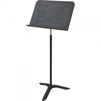 Hamilton orchestra stand, automatic lock for smooth height adjustment from 30" to 53", black enamel and chrome.