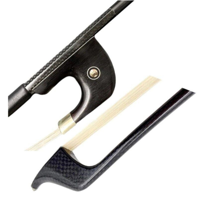 Woven Carbon Fiber Bass Bow, German, with Metal tip to provide durability and balance. Choose size from drop-down box, available in 3/4-1/8 size.