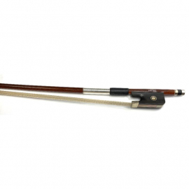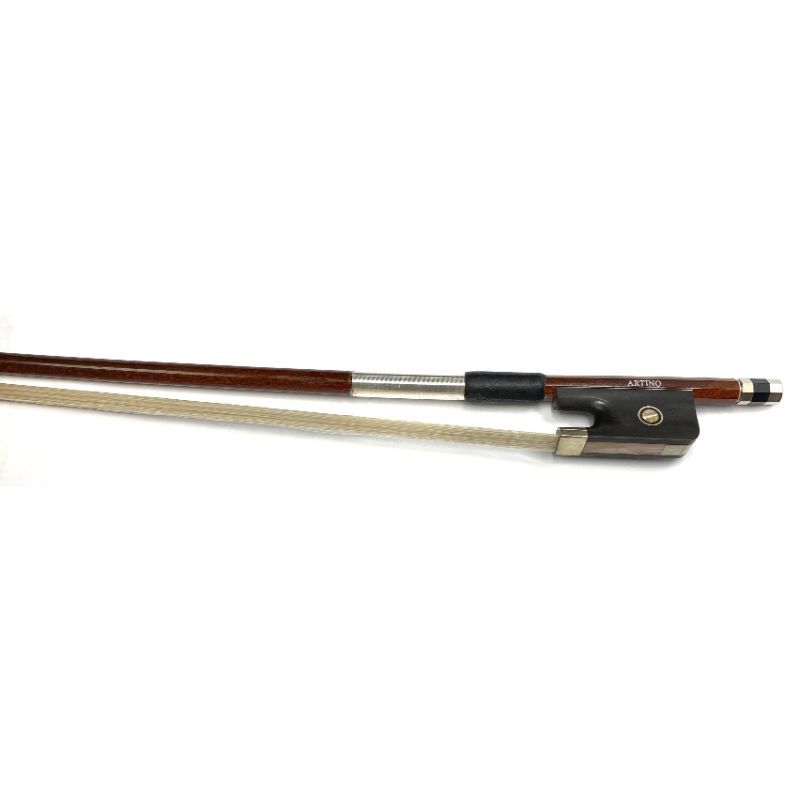Artino High quality wood veneered carbon fiber Cello Bow. Nickel silver windings/mountings, genuine full-lined better ebony frog with Parisian eyes with real horsehair.