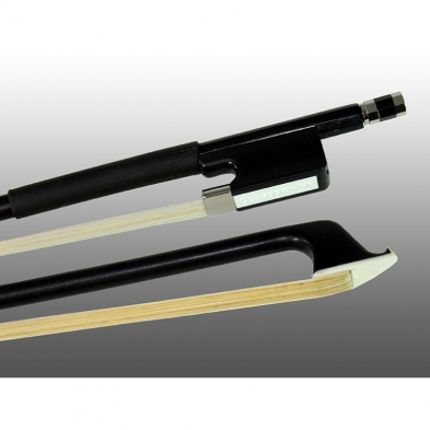 Glasser Fiberglass VIOLA Bow, classic black color, with half-lined bow frog with metal under slide and an imitation three-part button, genuine unbleached white horsehair, and leatherette grip. Best-selling student Fiberglass bow! Available 4/4 - 1/4 Sizes.