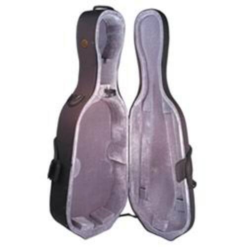 Deluxe Featherweight Cello Case, made from wood, reinforced high density polystyrene, blue gray velvet interior, center latch, wheels for transport, hygrometer, six handles, two bow holders, backpack straps. weighs approx. 10.5 pounds, Extra shipping applies on this cello case, based on state or country. Please call or email for exact shipping cost.