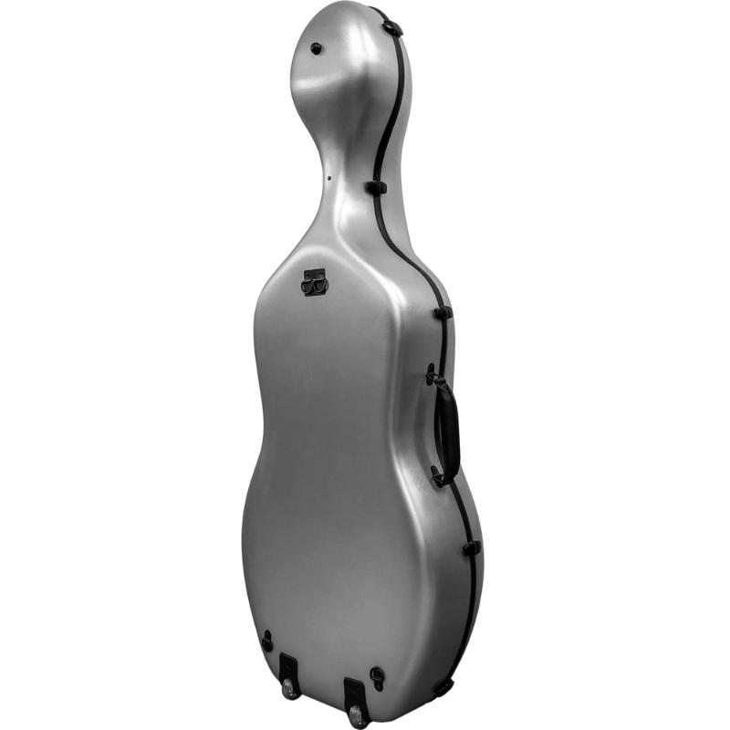 Calvert Polycarbon Premium Cello Case. 4/4 Size - Amazingly lightweight and easy to carry, durable and protective to transport your instrument, and spacious! The Calvert cases are constructed of protective and scratch-resistant Polycarbon with durable and long-lasting hardware. Cello case features include: two bow holders, backpack and top rolling strap, and wheels. (Does not include back music pocket) Cello Case weighs 9.0 lbs. Choose Color from drop down box below. Available in Black, Blue, Grey or Red.