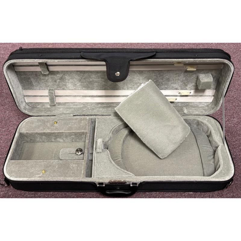 Calvert Adjustable Woodshell Oblong Viola Cases are made with strong plywood construction, durable hardware, and leatherette handle. Other features include full suspension, cloth-covered exterior with full length music pocket, zipper closure with latch, and detachable back-pack style straps. The silver-gray plush interior provides four Hill-style bow-holders, Two storage compartments for accessories, and an instrument blanket. Adjustable for 12”-16 ½” Viola. Weighs 7 lbs.