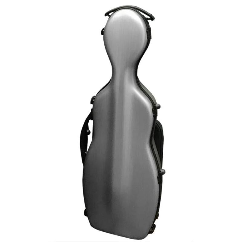 Calvert Polycarbon VIOLIN Case “Cello Shaped”. Amazingly lightweight and easy to carry, durable and protective to transport your instrument, and spacious! Constructed of protective and scratch-resistant Polycarbon plastic with durable and long-lasting hardware. Grey exterior with Black interior.
