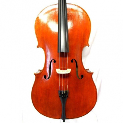 Fully handmade Cello with a well graduated solid spruce top, nicely flamed maple back, sides and neck. Ebony fingerboard, pegs, hand applied slightly antique style varnish. Excellent playability, mellow tone, and dynamic projection. Best value solid cello for both beginners and advanced players. Outfit includes padded bag and Brazil wood cello bow. Available in 4/4-1/8 sizes