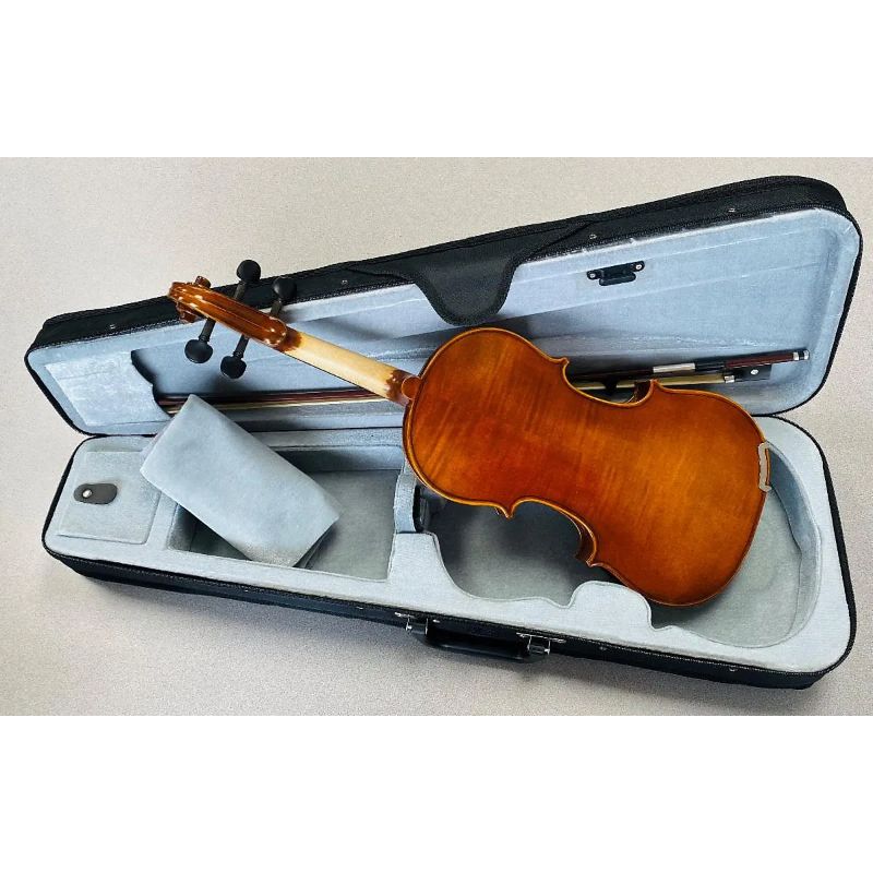 These Violins are very carefully made with fine graduations for the best possible tone. All Otto violins come with a featherlite case and brazilwood bow. They use fine quality ebony fittings, Otto fine tuner tailpiece and Otto brand strings. Very well varnished with thin spirit varnish and the Setup is done well. Petite feeling neck, light in the hands and sure to impress you. Intermediate Otto Violin Outfit. Flamed maple, semi-gloss fine varnish and very detailed workmanship. 4/4 size .