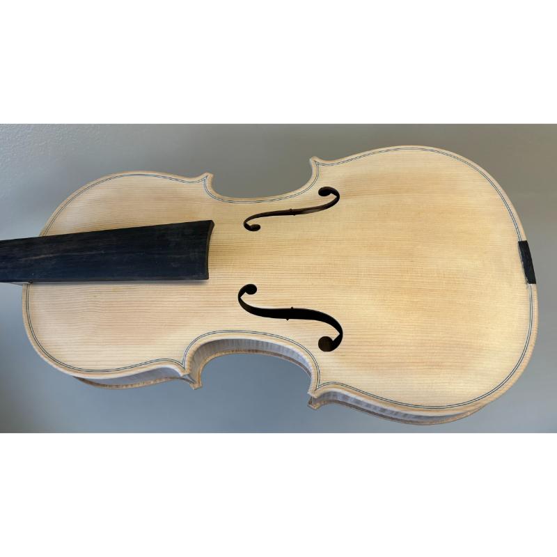 White Violin, Guarneri Model, Flamed, NO BASS BAR, Tack Glued. Made in China. These violins are lightly tack glued together so that you can open the top and back to check the graduations and install your own bass bar. These violins have fine workmanship and clean inlaid purfling.
