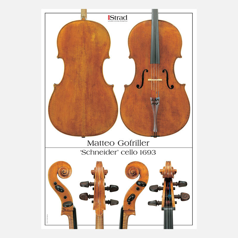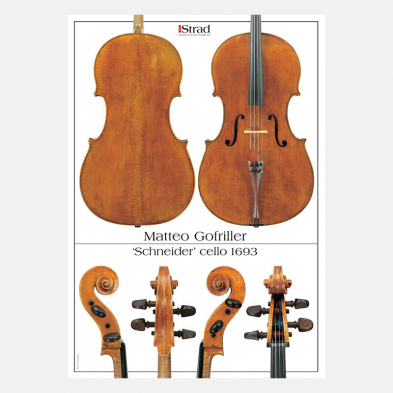 Posters - An unusual cello by the Venice-based luthier, with a rosette that harks back to his German training and influences. Includes measurements 'Every Gofriller scroll seems improvised - if he used a template it was treated as the loosest guide - yet they all have the same stance and character. This early model doesn't show his more extreme traits, but the style is truly established. There is something very viol-like about the way the pegbox unrolls slowly and the volutes lean backward.' - John Dilworth in the December 2003 issue.