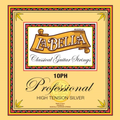 The 10PH High Tension Silver set has clear high-density nylon trebles and silver-plated wound basses. Designed for the modern concert guitar with a long string scale (65.5 - 66.4cm), these bass strings are wound with a new silver-plated alloy.