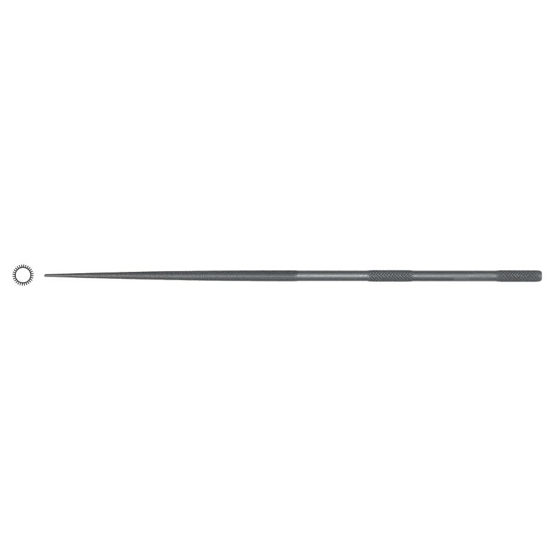 158mm total length, cutting length 80mm, Thinnest 0.5mm and Thickest 3.2mm, fine. Grobet USA 16cm Round Needle File, Cut 2. Grobet USA Swiss Pattern Needle Files are precision files, for exacting work, especially under magnification. Made of the highest quality steel, machined and finished for precision shape, accuracy and balance. Handles are knurled.