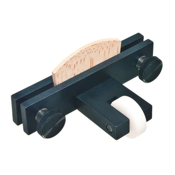 Allows anyone to fit feet of bridge quickly, violin/viola. The Bridge Foot Fitting Jig helps you fit the feet of the bridge to the top of the instrument. This tool holds the bridge firmly at the correct angle as you go back and forth on sandpaper to help fit the curvature of your top to the feet of the bridge. Instructions included.