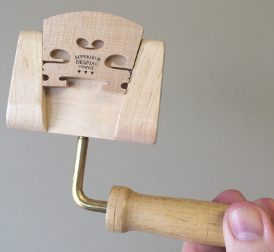 Violin/Viola Bridge Shaping Cradle, One side is slotted for violin and the other side for Viola. It has the option for handle placement on all 4 sides, handle included.