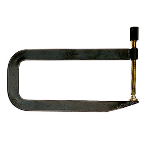 Herdim repair clamp for cleating cracks, gluing bass bars, fingerboards, etc. Hand forged steel of high stablility and low weight, depth 110mm, opening 45mm.