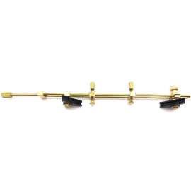 Brass crack clamp with leveling jack screws and protective rubber jaws, Opening 200 mm. Ideal for clamping the upper or “C” bout of a violin or viola.