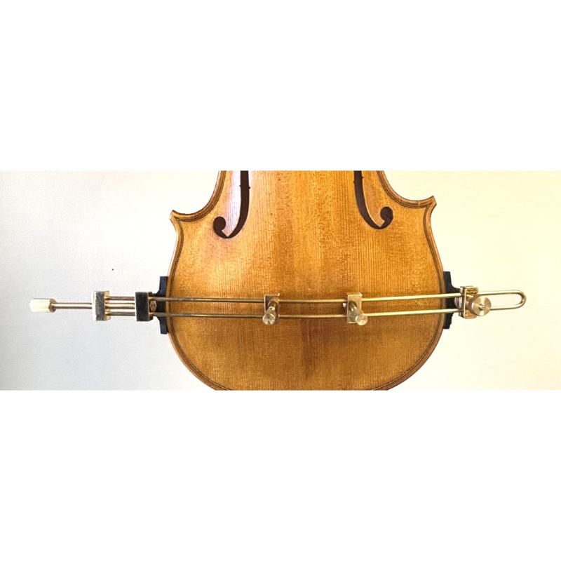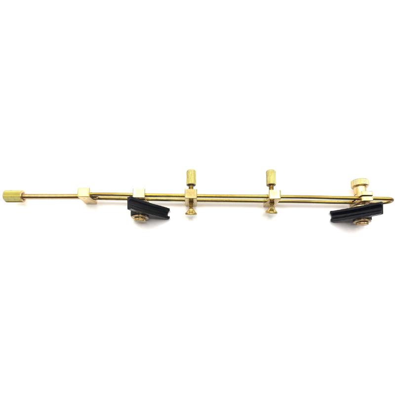 Brass crack clamp with leveling jack screws and protective rubber jaws, Opening 240 mm. Ideal for clamping the lower or upper bout of a violin or viola.
