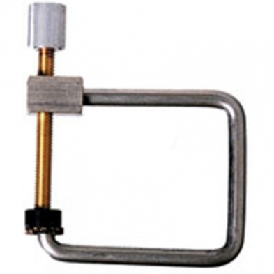 A handy clamp that fits through F-hole for patching work without removing top. Patch is lightly glued to clamp and positioned for clamping in place. Available in following throat depths: 1", 2", 3", and 4" or a set of 4. Choose size.