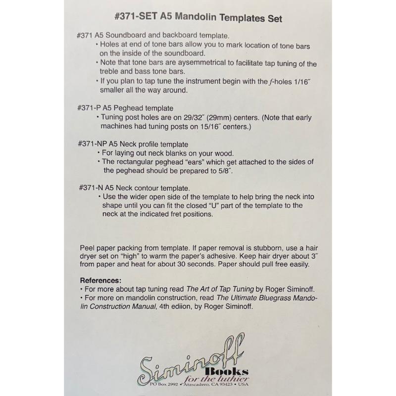 Siminoff templates are precision laser-cut to the exact shapes and sizes of the parts they represent and match perfectly to the drawings in The Ultimate Bluegrass Mandolin Construction Manual.