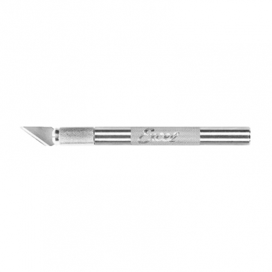 Medium duty knife, super sharp, 3/8" blade, 7/16" round aluminum handle with 5 assorted blades, curved edge, beveled edge, angled edge, straight edge, and duburring edge.