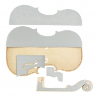 Violin Template Set, Guarneri Kochanski 1741, the set contains all necessary templates for plate outline, rib form outline, neck (scroll) template, f hole template including the f hole position and an outer corner form for detailed control on corner details, made of stainless steel.