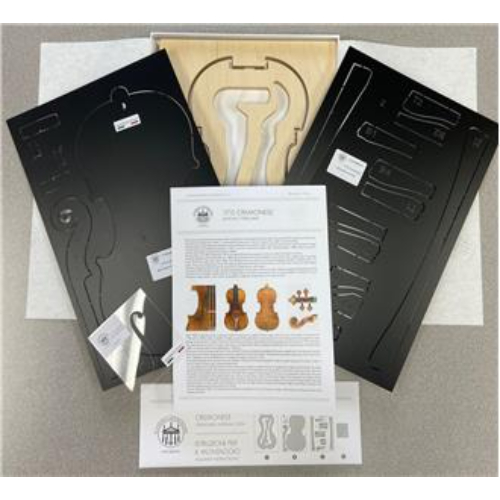 Strad 1715 Cremonese Model - This deluxe set includes an inside mold that is 15mm thick made of 11 ply wood. The set contains all templates for plate outline, neck (scroll) template, f-hole template including the f-hole position, upper and lower blocks, corner blocks and complete arching templates for top and back. Also included is a brief history of the violin maker and model with a color photo. Made in Italy