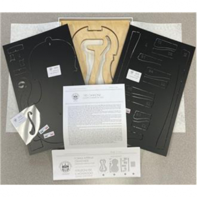 Cannone Guarneri Model - This deluxe set includes an inside mold that is 15mm thick made of 11 ply wood. The set contains all templates for plate outline, neck (scroll) template, f-hole template including the f-hole position, upper and lower blocks, corner blocks and complete arching templates for top and back. Also included is a brief history of the violin maker and model with a color photo. Made in Italy.