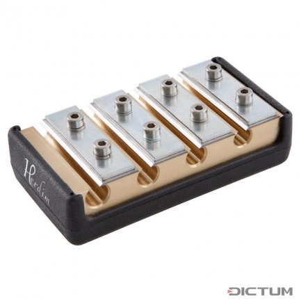 The brass body is fitted with double-sided blades which display high cutting performance and excellent edge life. Resharpening the blades is not recommended due to the different hardening of the cutting edges. Thanks to the replacement blades, time-consuming resharpening is unnecessary. The soft plastic case provides a comfortable, non-slip grip. All peg shapers come with instructions for use and a hexagonal key for adjusting the blade. Taper 1/30, Instrument Violin, Viola, Standard, Working length 50 mm. Hole Sizes in MM - Ø 8 x 6.3 / 8.5 x 6.8 / 9 x 7.3 / 9.5 x 7.8 mm