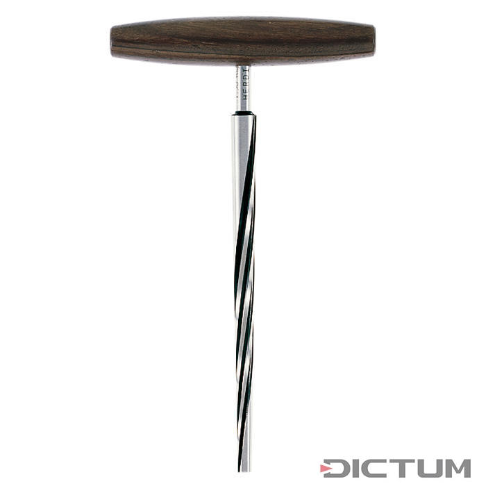 Herdim Spiral Peg Reamer. Violin, standard size, 1/30 taper. The new spiral cutting edges allow undreamt of cutting quality. the wood fibers are cut at an angel which makes these reamers completely chatter free, ensuring perfect round hole. Especially well suited for working on sensitive old instruments whose pegboxes often have very hard medullary rays. Padauk wood handle. Matching peg shaper T-33 sold separately.